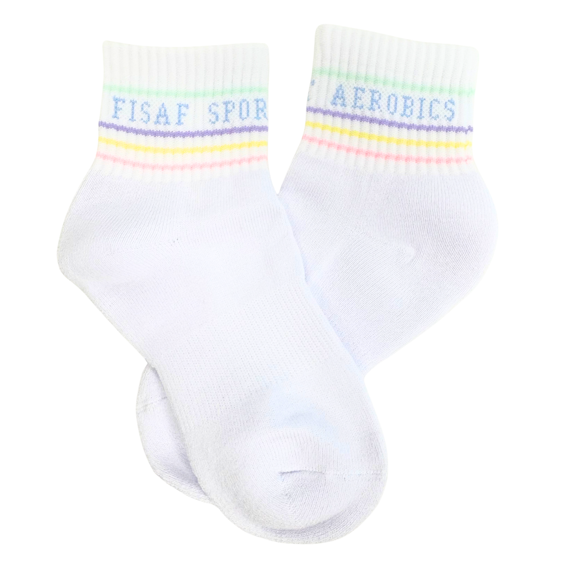 - Fun pastel logo colours with ‘FISAF SPORT AEROBICS’ featured around the cuff